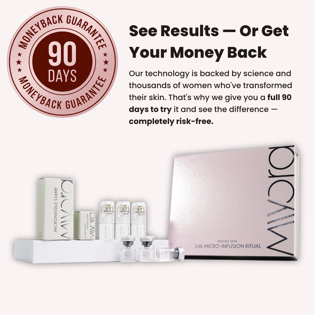 *Results may vary. Photos are from real Miyora 24K Ritual users. We offer a 90-day money-back guarantee so you can try it at home with complete peace of mind.
